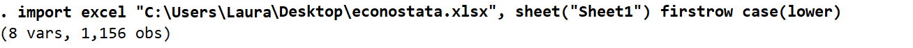import excel "C:\Users\Laura\Desktop\econostata.xlsx", sheet("Sheet1") firstrow case(lower)