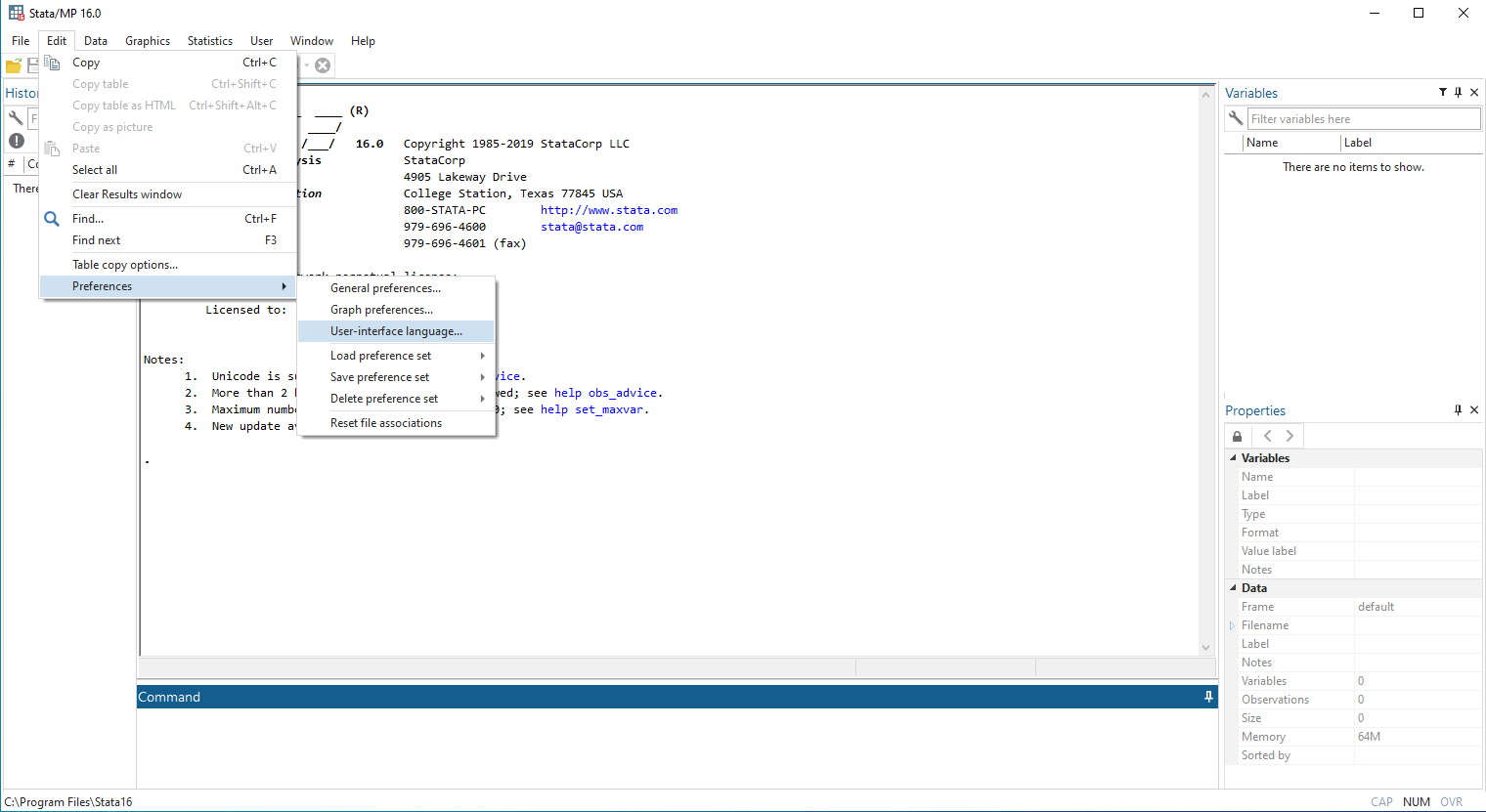 Stata’s interface is available in Chinese, Japanese, Korean (new in Stata), Spanish, and Swedish. Today, we would like to show you how to change your menus to other languages.