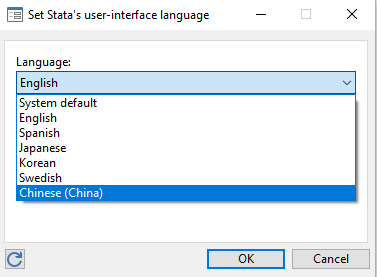 Then select your preferred language as your interface language. For example, if you choose Chinese (China), the language will be changed to Chinese, you will need to restart Stata to make this change effective.