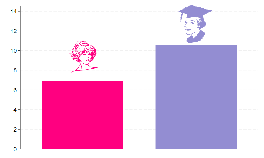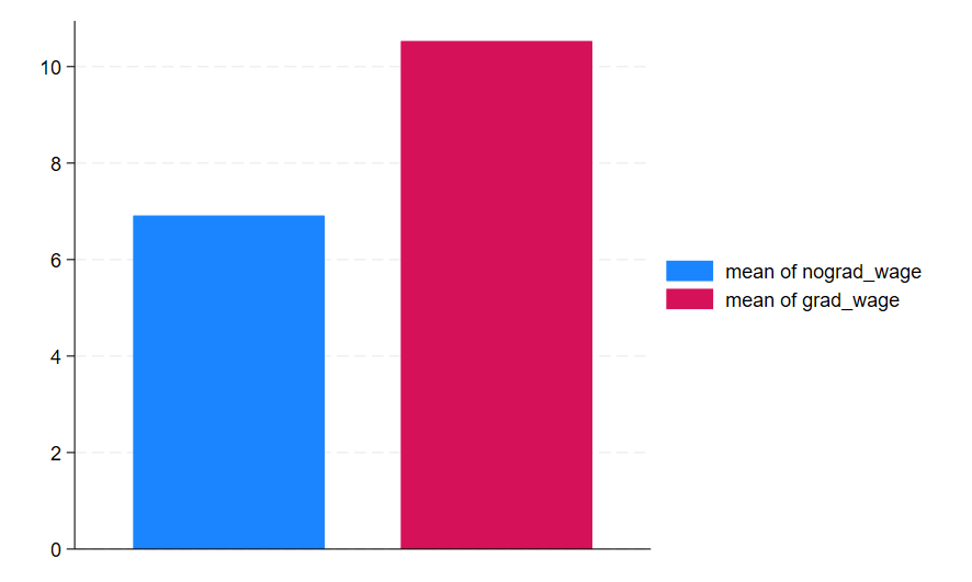 graph bar (mean) nograd_wage (mean) grad_wage, bargap(40)
