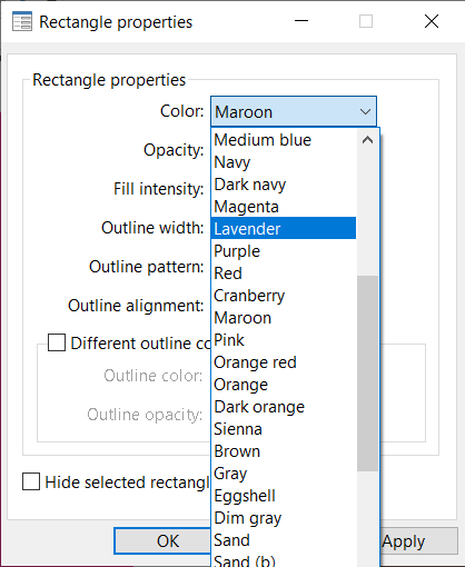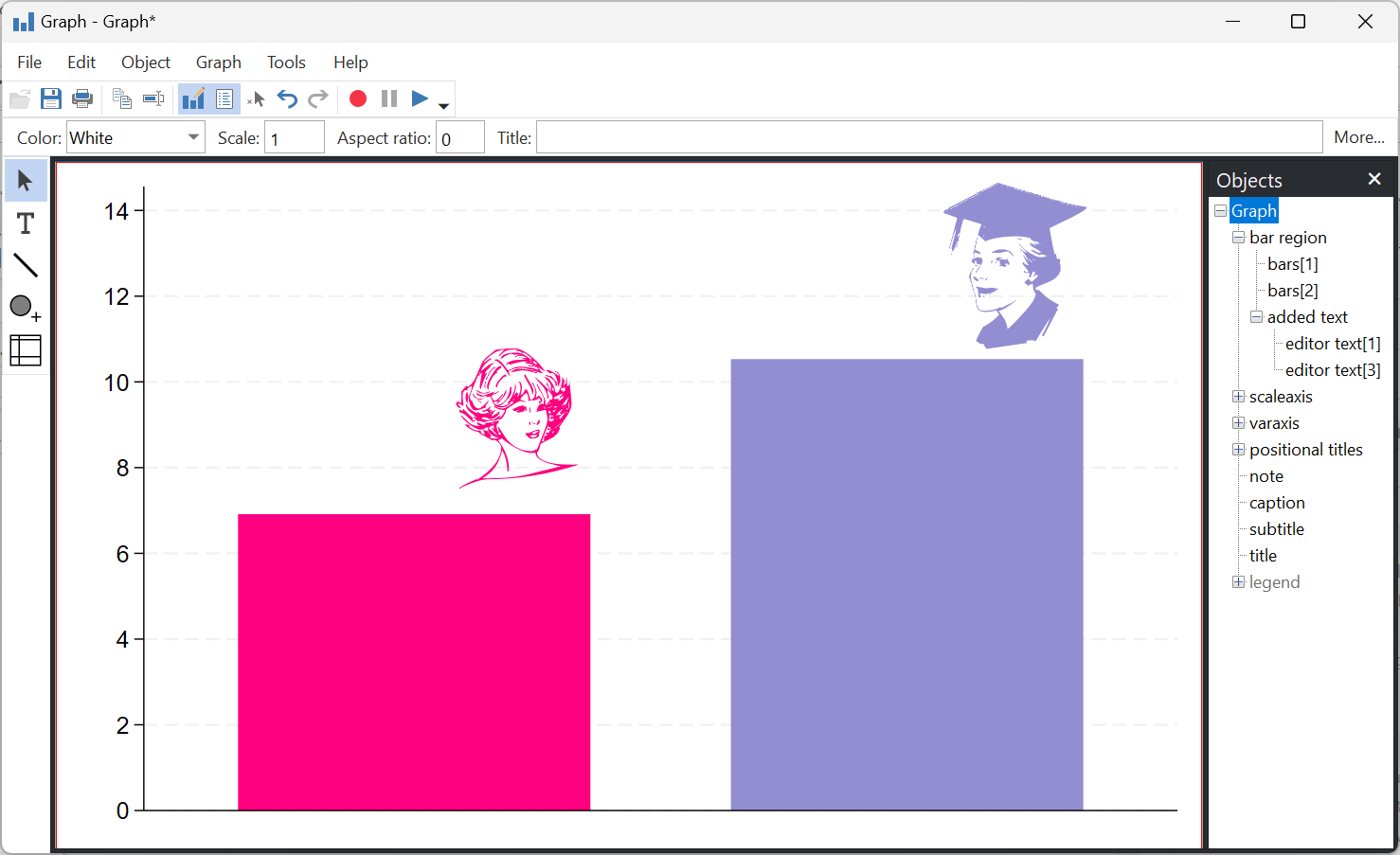 Now I want to change the bar colours. I click the “+” next to “bar region” in the right-side menu then double-click on bars[1] to change nograd_wage and bars[2] to change grad_wage. I change the colour of the nograd_wage bar to pink, and I change the colour of the grad_wage bar to lavender. I click OK in each box to apply the change.