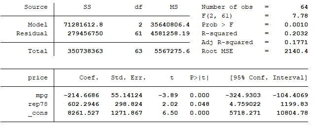 regress price mpg rep78