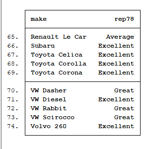 label define rep78lbl 1 "Very Poor" 2 "Poor" 3 "Average" 4 "Great" 5 "Excellent"
