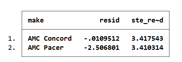 list make resid ste_resid in 1/2